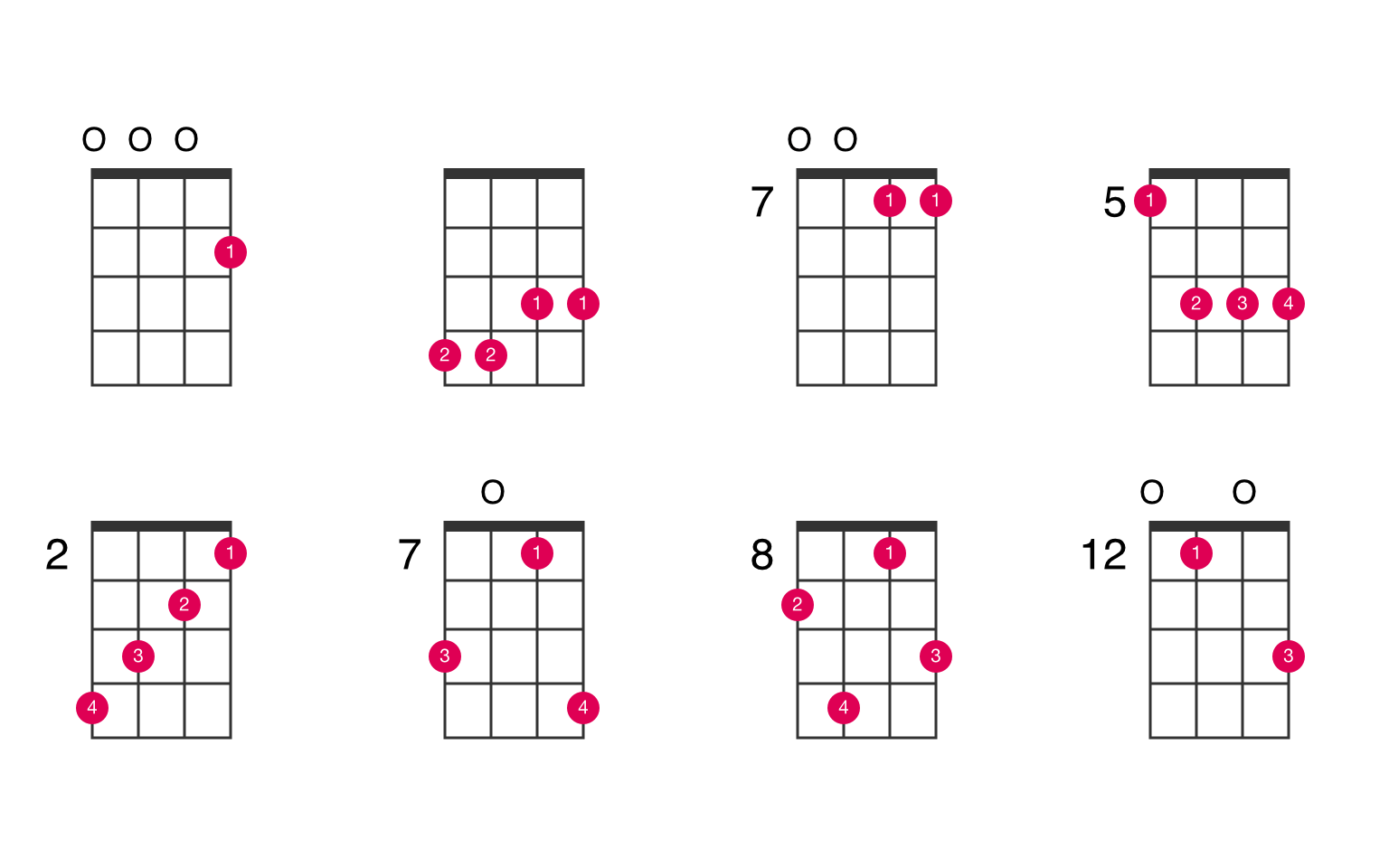 C#7 chord voicings for ukulele.